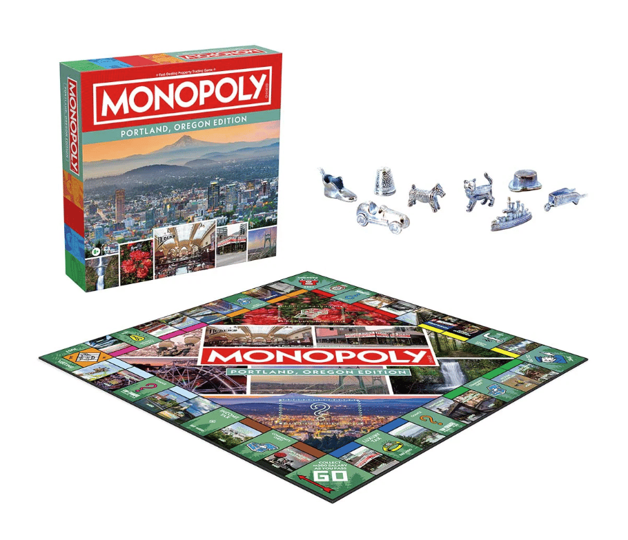 A CELEBRATION OF THE ROSE CITY: A must-have for Portlanders and Monopoly collectors alike, this game brings Portland’s charm and creativity right to your table.